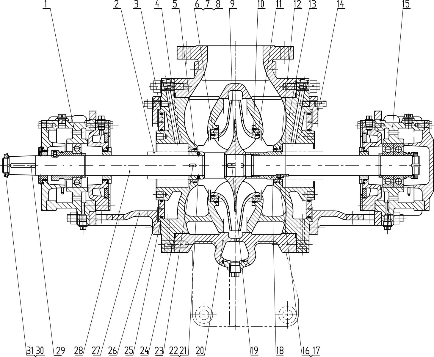 7 | Impeller Wear Ring(Drive End) | 15 | Bearing Component(Non-Drive End) | 23 | Key(For Drive End Shaft Sleeve) | 31 | Locking Washer |